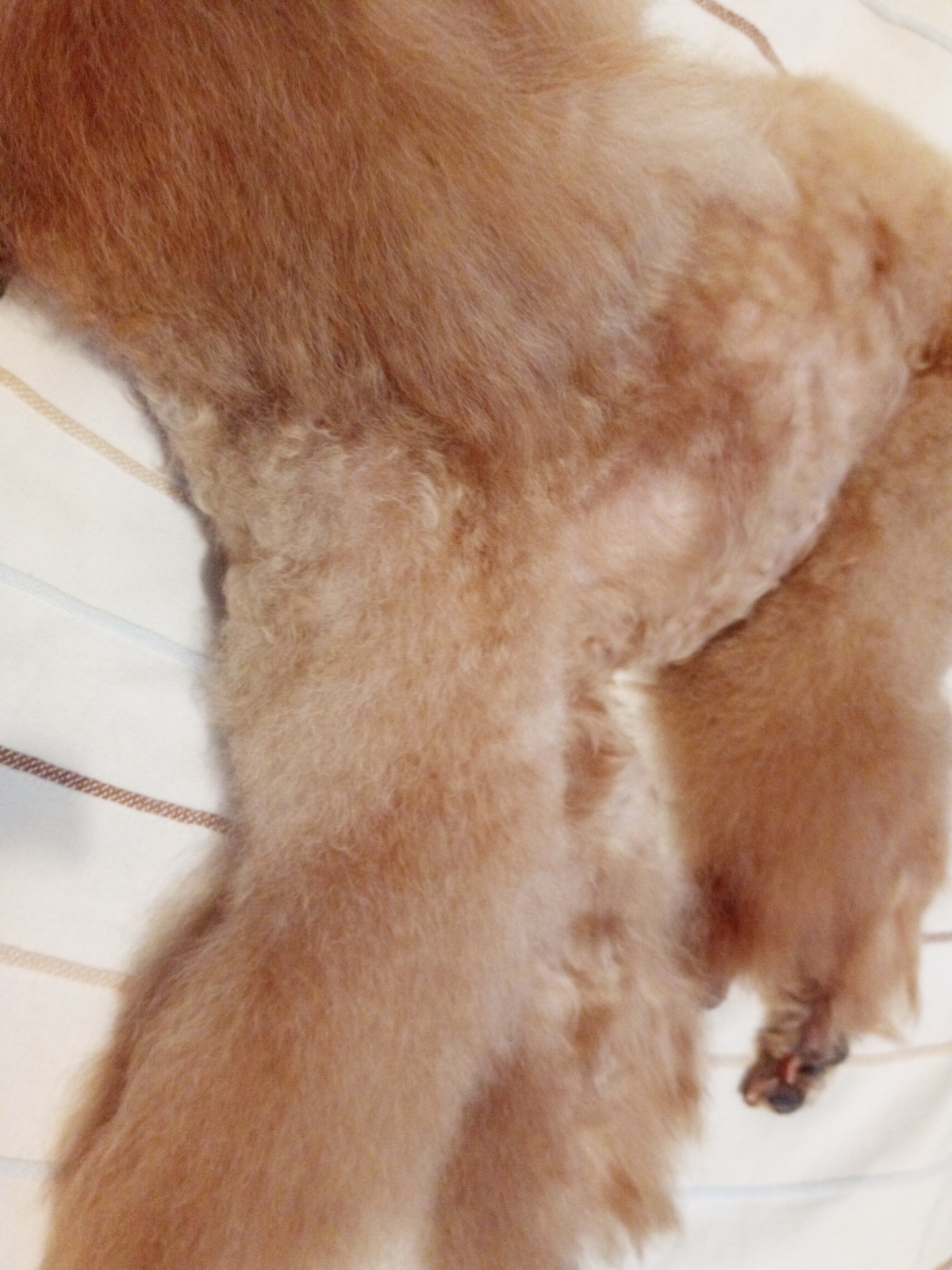 後ろ足は滑り止めで、たまに靴を履くので毛先が擦り切れてしまって😣 シニアになるとどうしても後ろ足の踏ん張りが効かなくなりハの字に開いてしまって、特にFranさんの場合はそうなの💦そう言う状態を何回か繰り返すと背骨に影響が出て来るので気を付けて下さいと獣医師に言われたので、極力ハの字体制にはならない様に気を付けてます。